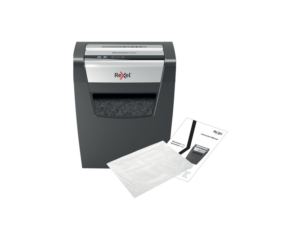 Nezastavitelná skartovačka! Rexel Momentum X410 skartuje až 10 listů najednou a vydrží v nepřetržitém chodu 6 minut, vhodná pro použití doma. Technologie proti zaseknutí papíru garantuje nepřerušované skartování. Křížový řez na úrovni zabezpečení P4 řeže papír na části o velikosti 4x28 mm. Dotykové ovládání pro snadné a intuitivní ovládání. Objemný koš s kapacitou 23 l pojme 225 listů A4.Skartovací cyklus 6 minut pro skartování více dokumentů najednou
