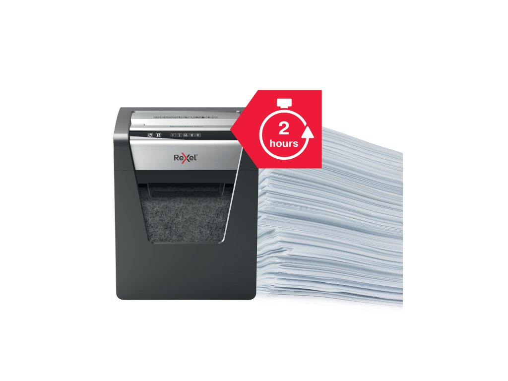 Nezastavitelná skartovačka! Rexel Momentum X415 skartuje až 15 listů najednou a vydrží v nepřetržitém chodu 2 hodiny, vhodná pro použití v menších kancelářích. Technologie proti zaseknutí papíru garantuje nepřerušované skartování. Křížový řez na úrovni zabezpečení P4 řeže papír na části o velikosti 4x40 mm. Dotykové ovládání pro snadné a intuitivní ovládání. Objemný koš s kapacitou 23 l pojme 225 listů A4.Extra dlouhý skartovací cyklus - zvládne skartovat nepřetržitě až 2 hodiny