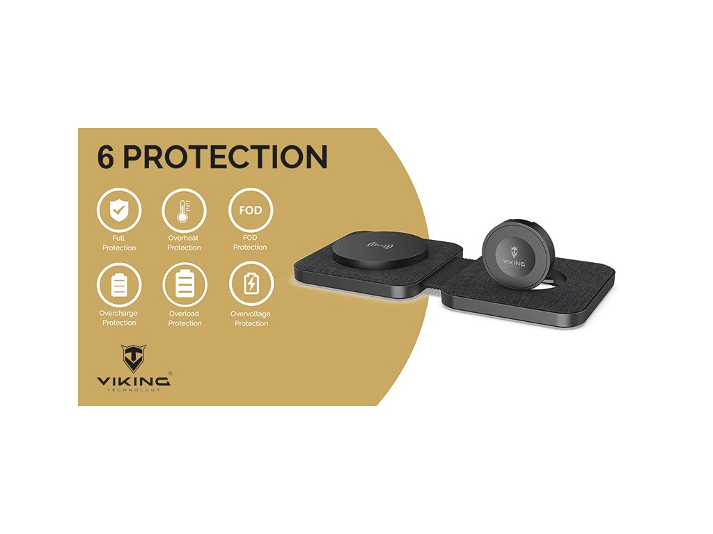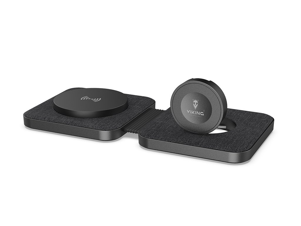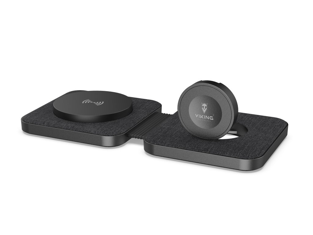 Skládací wireless nabíječka • 1 x USB-C vstup • výkon výstupu pro mobily 15W Max. • výkon výstupu pro hodinky a sluchátka 2.5W Max. • nabíjení až 2 zařízení současně • USB-C kabel 1 mSkládací wireless nabíječka Viking WN21