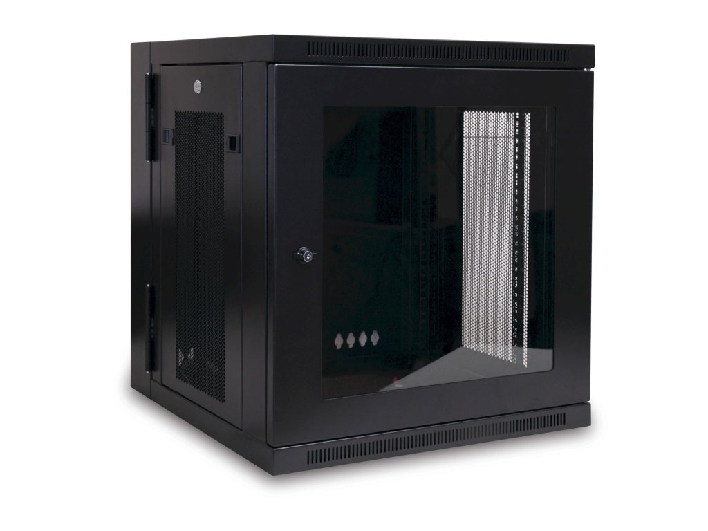 Skříň SmartRack 12U, Š=600mm, Hl=550mm, hloubka pro přepínače, prosklené dveře, montáž na stěnu