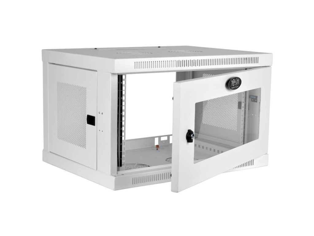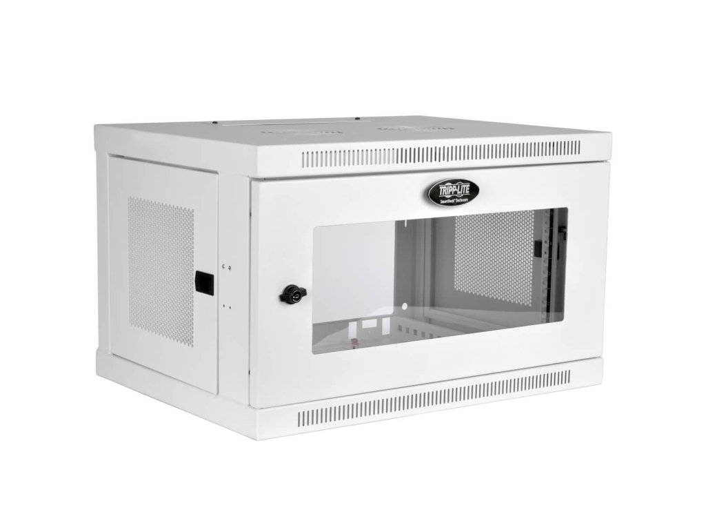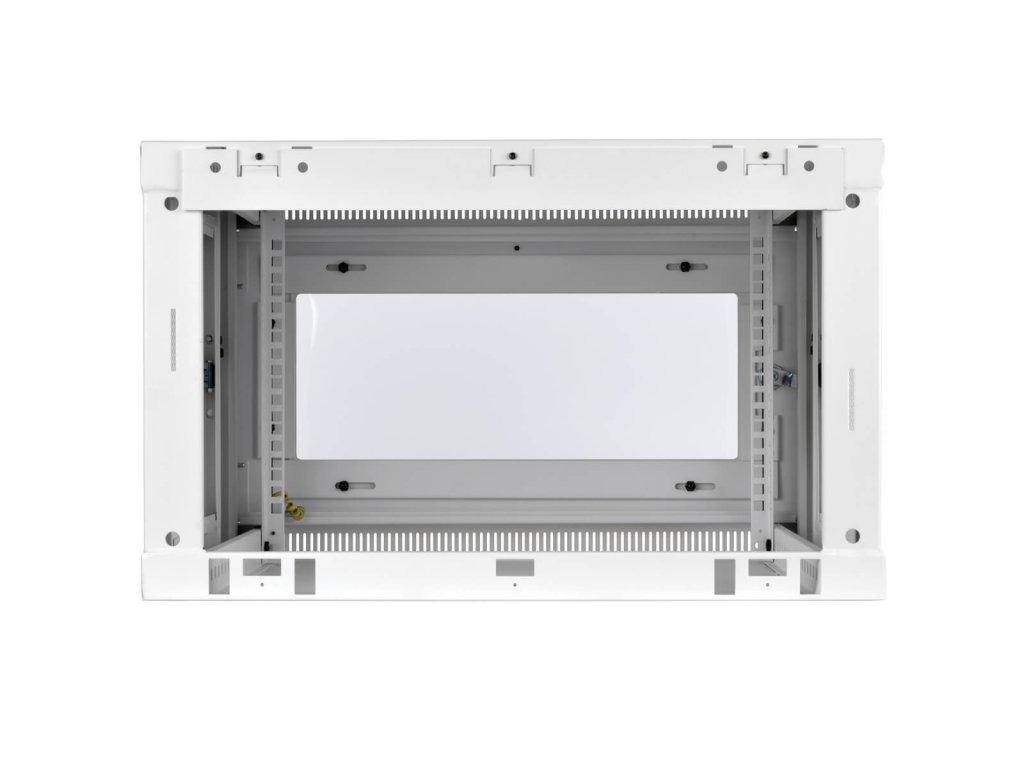 Skříň SmartRack 6U, Š=600mm, Hl=450mm, hloubka pro přepínače, prosklené dveře, montáž na stěnu, bílá