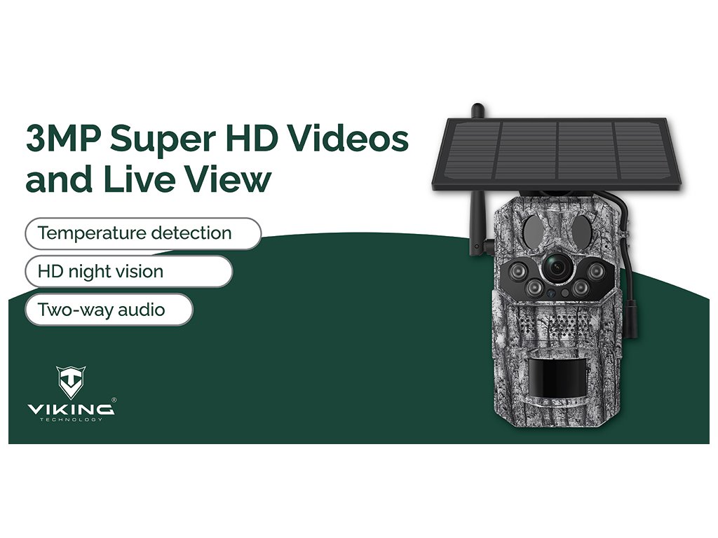 Solární kamera Viking HDs05 4G nabízí vysoké rozlišení 2304 x 1296, stupeň vodotěsnosti IP66 a noční vidění s dosahem až 20 metrů. Díky solárnímu panelu je zcela nezávislá na elektrické síti.