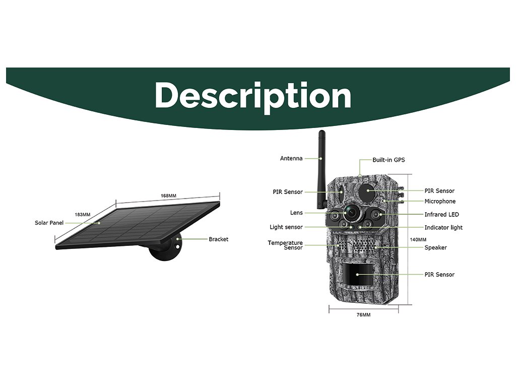 •Rozměry: Kamera 14 x 10 x 8 cm, Solární panel 18,3 x 16,3 cm