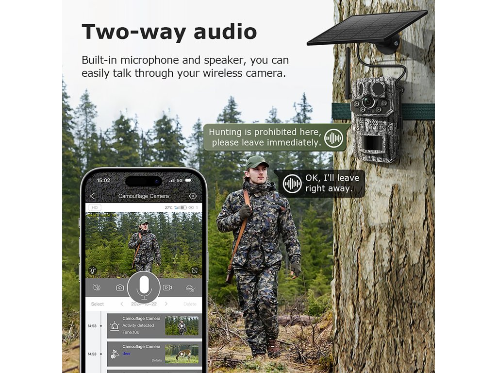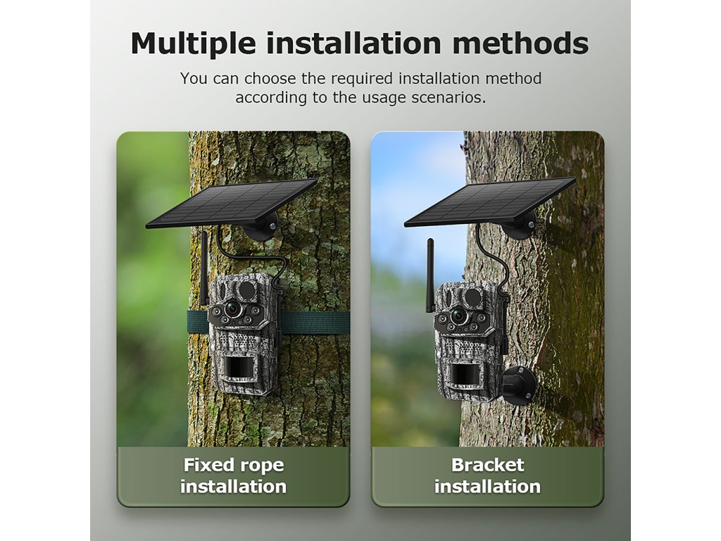•Solární napájení: 5W monokrystalický křemíkový solární panel zajišťuje ekologické a udržitelné napájení, doplněné o výkonnou baterii s kapacitou 7800mAh.