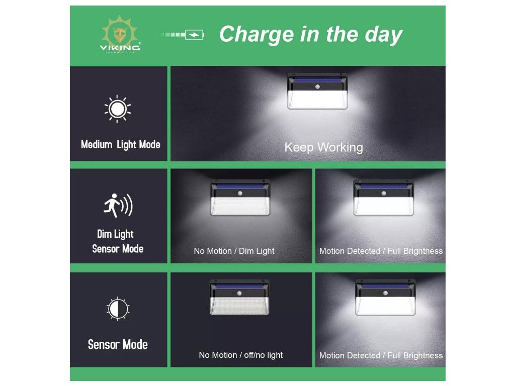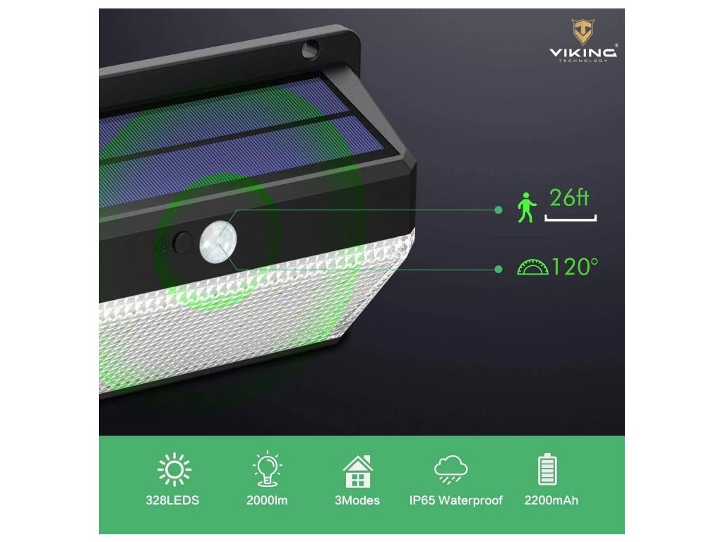 Venkovní solární LED světlo s pohybovým senzorem VIKING M328Solární LED světlo M328 s pohybovým senzorem a s 328 LED diodami. Ideální k osvětlení venkovních prostor bez možnosti připojení k elektrické síti, jako je např. zahrada, vstup do domu atd.