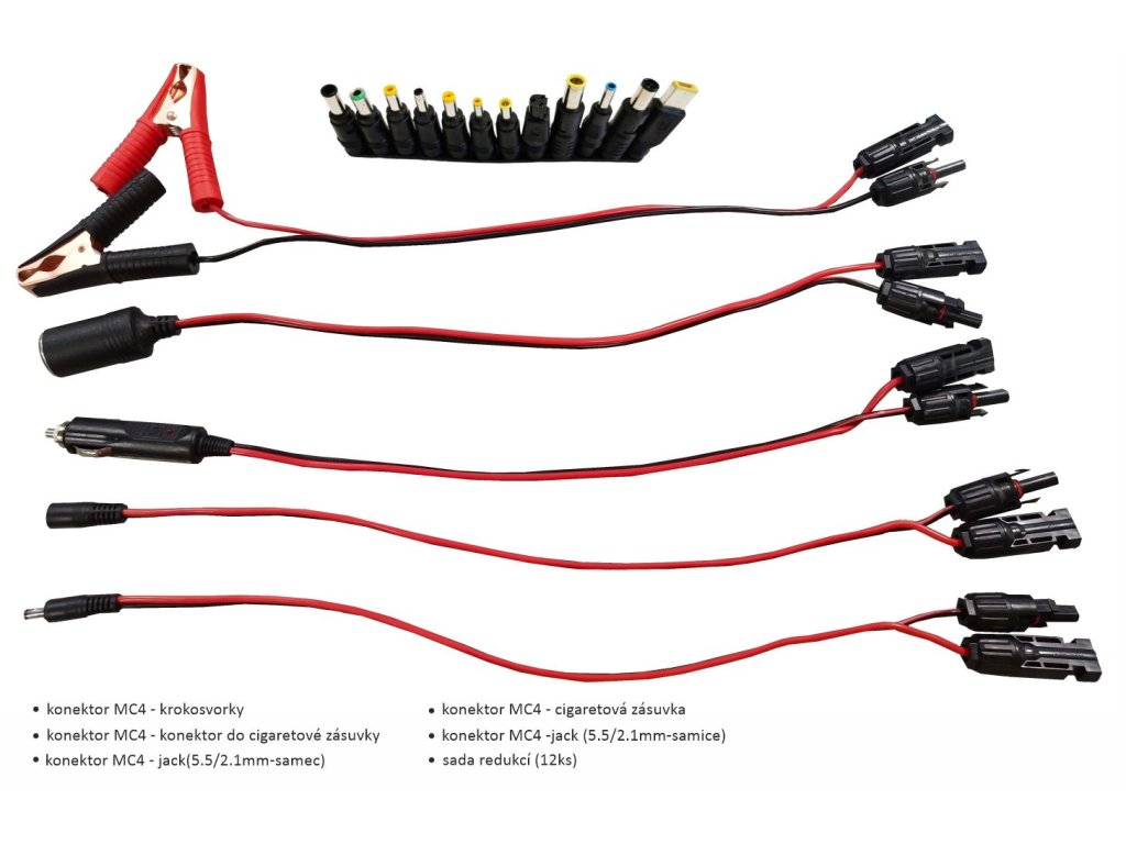 Při použití vhodné redukce, můžete také nabíjet vaše powerbanky, čelovky, fotoaparáty, kamery, baterky, drony, zapojit na kompresor, cestovní chladničku, notebook, televizor, PC, atd.