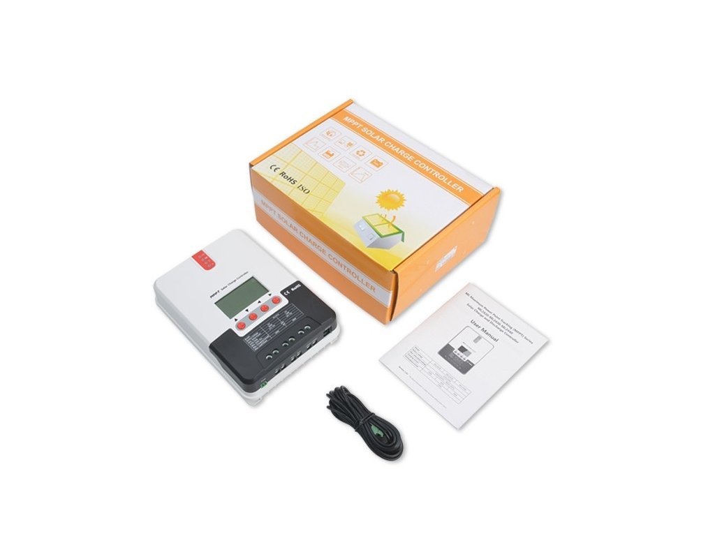 Regulátor nabíjení MPPT s vestavěným modulem MPPT a displejem. Účinnost sledování MPPT je 99,9%. Podporuje gelové, uzavřené, údržbové a lithiové baterie.