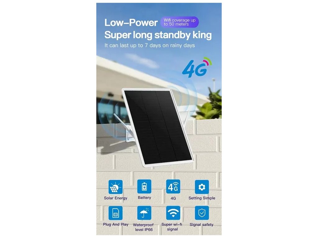 4G připojení · WiFi 2.4GHz · solární napájení 15W · WiFi až pro 8 zařízení · rychlost stahování až 150 Mbps · podpora LTE/WCDMA pásma · výdrž baterie až 50 hodin · odolnost proti teplotám -15°C až 75°C · bezpečnostní režimy WPA-PSK, WPA2-PSK · dosah WiFi až 60 metrů · mobilní připojení a správa přes aplikaci · SIM nano karta · rozměry 28,3 x 17 x 5 cmSolární router Viking R09 4G