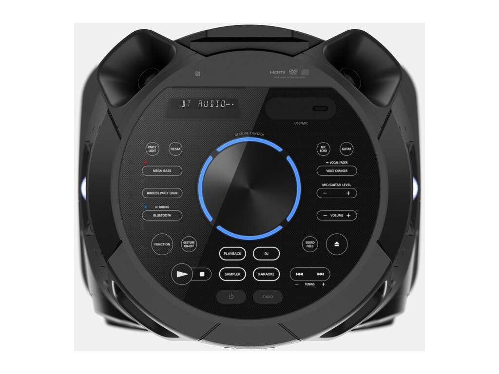 Zajistěte, ať se všichni na párty baví, ať už jsou s vámi kdekoli – s všesměrovým párty zvukem. Díky výkonným výškovým reproduktorům a účinným a šikmým středopásmovým reproduktorům hudba osloví všechny účastníky párty – ať už budou stát nebo sedět, zpívat či tancovat. Atmosféru zajistíte pulzujícím všesměrovým párty osvětlením a osvětlením reproduktoru. Další zábavu zajistí funkce karaoke, ovládání gesty a aplikace Fiestable. Připojení k televizoru umožní výstup HDMI™ (ARC).Klíčové vlastnosti