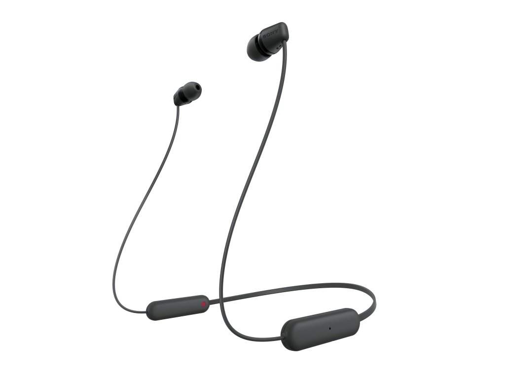 Sluchátka WI-C100 jsou lehká a snadno přenosná a díky flexibilnímu pásku na krk se dají na cestách ještě snáze vložit do tašky.