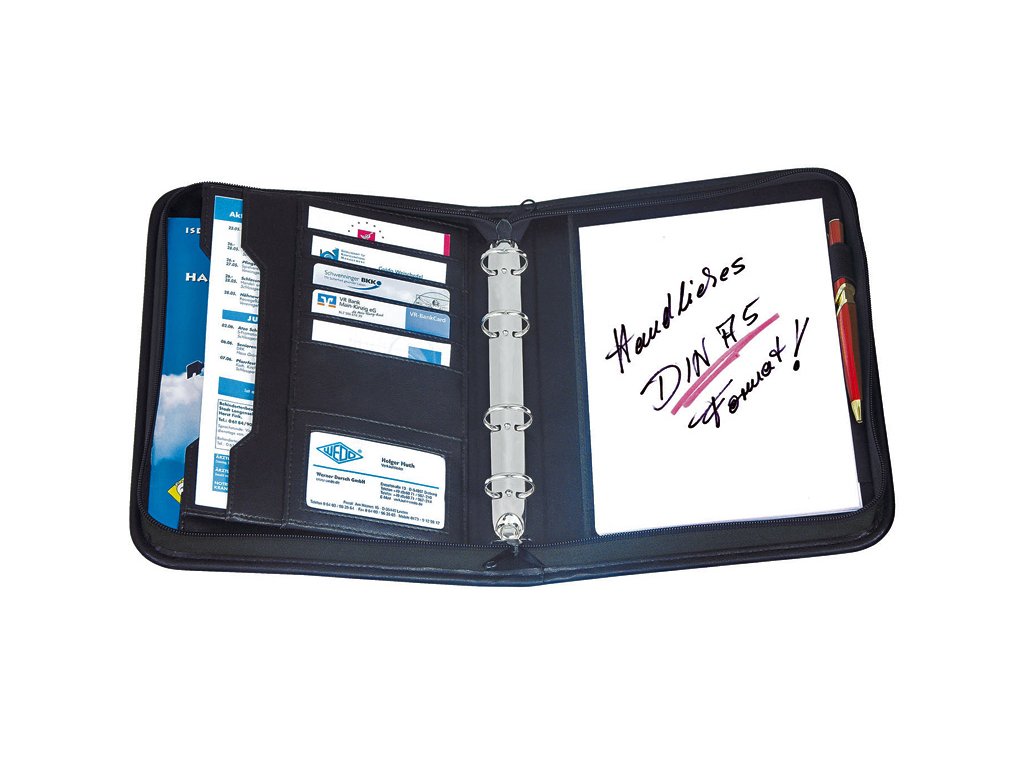 - Elegantní spisovka imitace kůže černé barvy na dokumenty formátu A5- Uzavírání na zip
