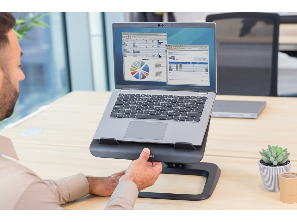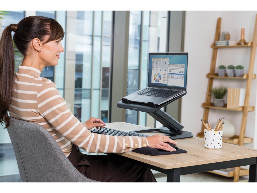 Používání stojanu na notebook Fellowes série HANA podporuje zdravější pozici při práci s notebookem. Redukuje napětí zad, uvolňuje napětí krční páteře a usnadňuje zachování správného držení těla. Stojan na notebook Hana™ LT v bílé barvě je určen pro notebooky s úhlopříčkou do 19'' a hmotností do 4,5 kg.• moderní minimalistický design