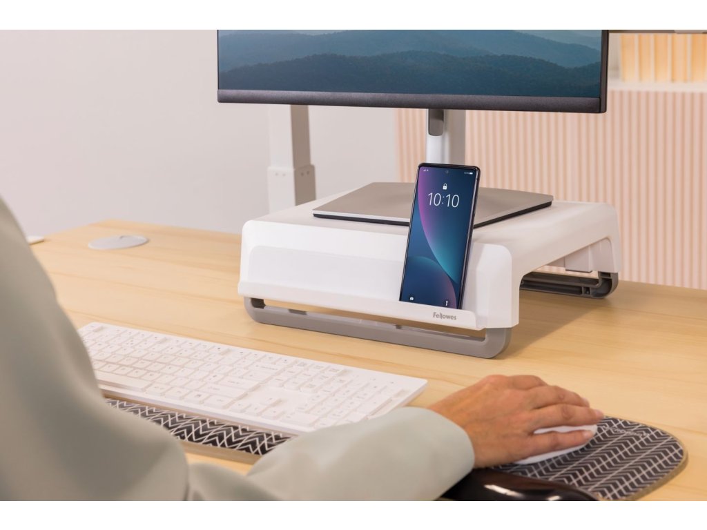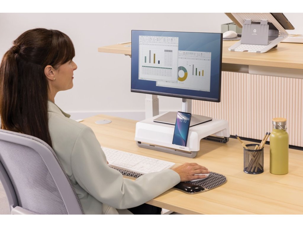 Používáním stojanu pod monitor Fellowes BREYTA předcházíte bolesti šíje a krční páteře. Umožňuje nastavení monitoru na úroveň očí, čím zmírňuje svalové napětí ramen a krku. Vhodné do kanceláře i domácnosti. Určen pro všechny typy monitorů či LCD / TFT monitorů do hmotnosti do 15 kg.POPIS:
