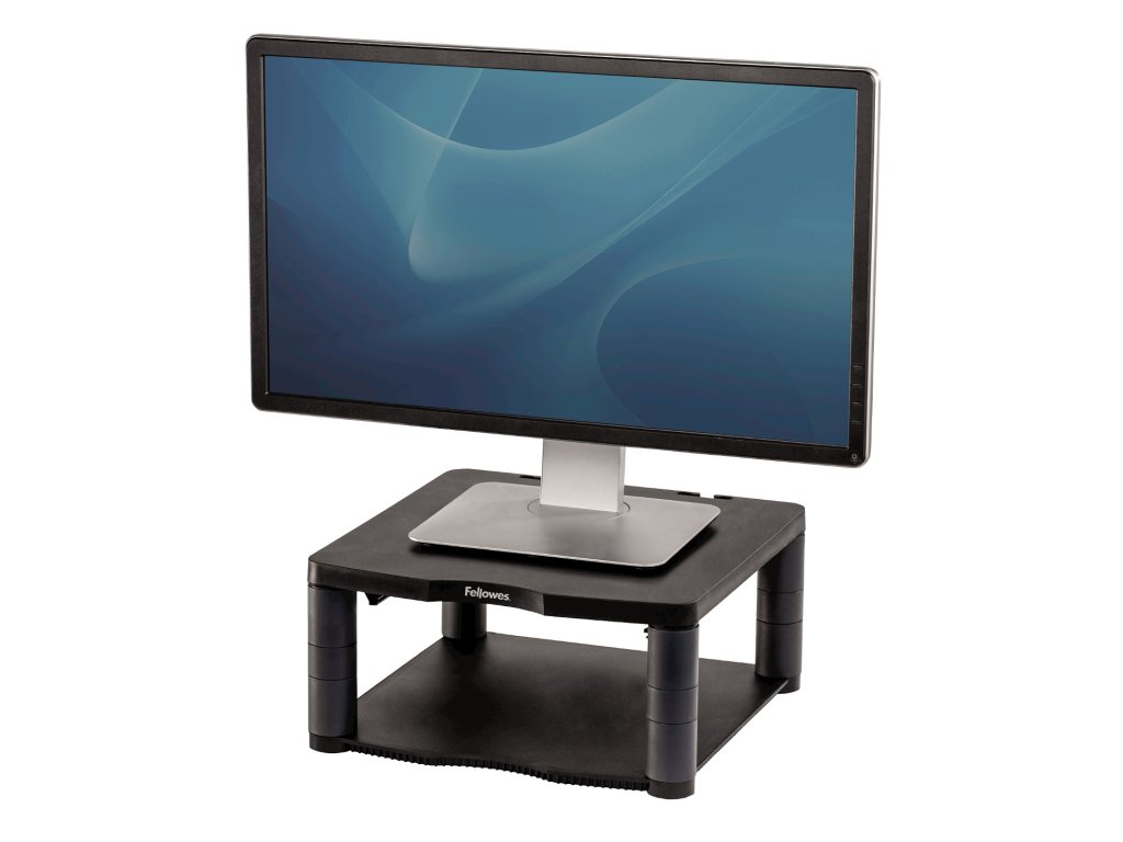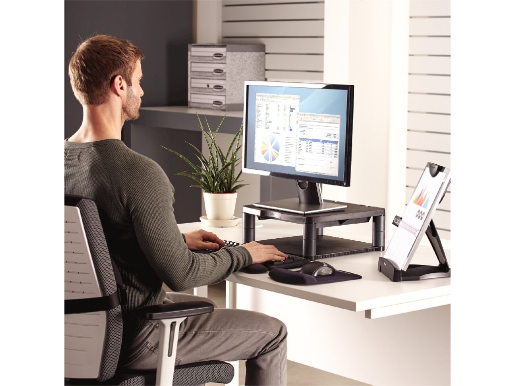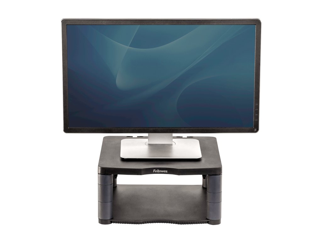 Používáním stojanu pod monitor Fellowes PREMIUM předcházíte bolesti šíje a krční páteře. Umožňuje nastavení monitoru na úroveň očí, čím zmírňuje svalové napětí ramen a krku. Vhodné do kanceláře i domácnosti. Určen pro LCD / TFT monitory do velikosti 21" a maximální hmotnosti do 36 kg.• usnadňuje organizaci pracovního prostoru