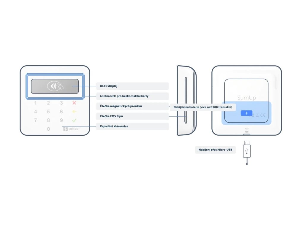 Platební terminál SumUp AirPlatební terminál SumUp Air usnadňuje platby kartou.