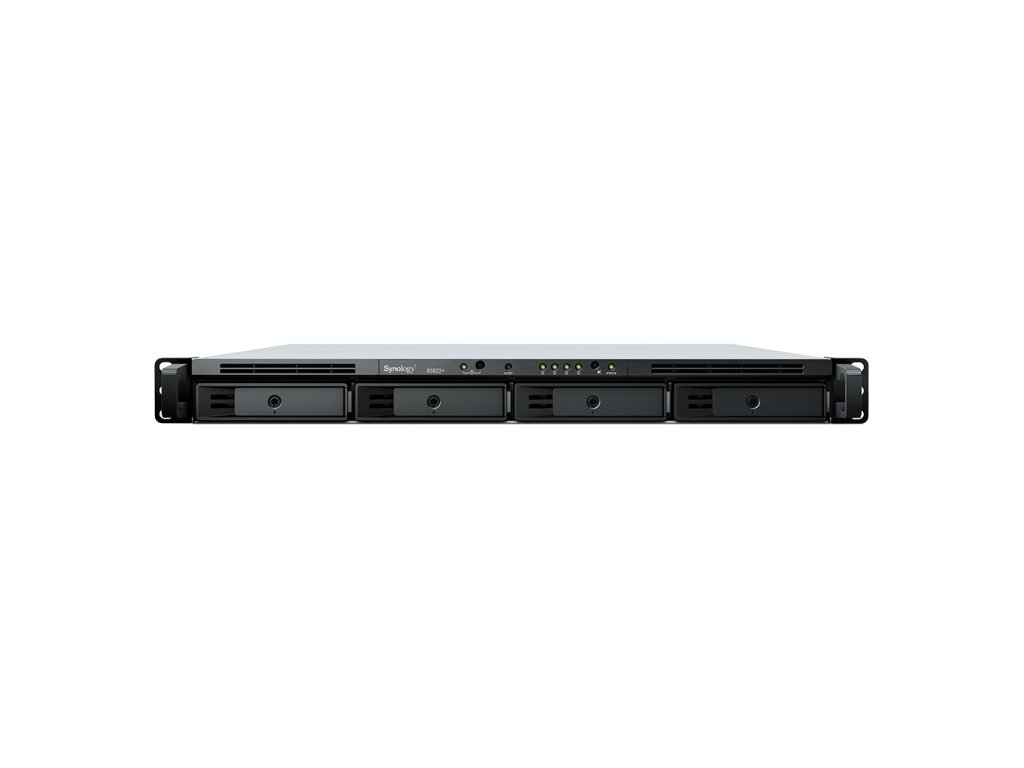 Synology RackStation RS822+Kompaktní, čtyřšachtové 1U zařízení Synology RackStation RS822+/RS822RP+ s možností rozšíření úložiště a připojení k síti, používající výkonný operační systém Synology DiskStation Manager (DSM), je ideálním řešením úložiště typu Edge pro pobočky a malé a střední firmy.