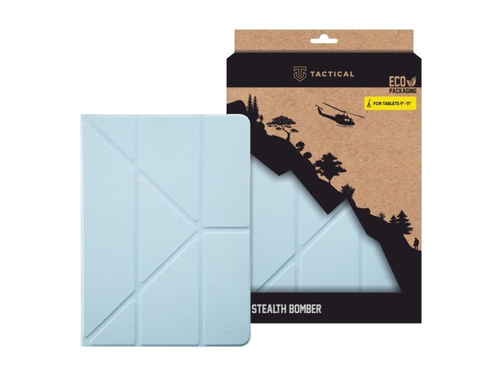 Přední kryt Tactical Stealth Bomber se pyšní systémem skládacího stojanu ve tvaru Y nebo Tri-Fold, proměňující Tvůj tablet v taktickou základnu.