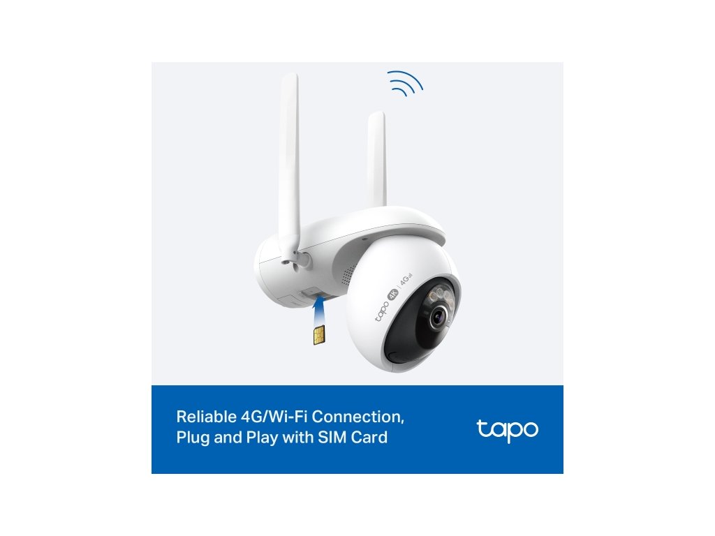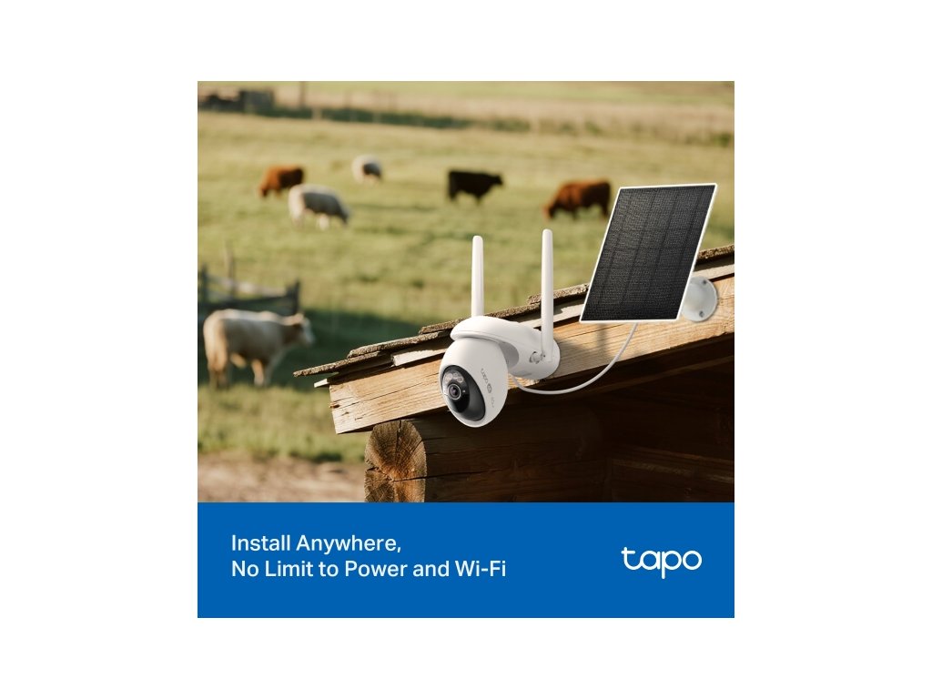 Tapo C665G KIT — solární 4G/LTE + Wi-Fi otočná bezpečnostní kamera 4KKamera Tapo C665G KIT nabízí maximální flexibilitu a spolehlivý dohled i na místech bez elektřiny nebo pevného internetu. Díky solárnímu napájení a vestavěné baterii je zařízení téměř bezúdržbové. Kamera poskytuje ostrý obraz ve 4K (8MP) s možností 18× digitálního zoomu a umožňuje plynulé sledování díky otáčení (pan) a náklonu (tilt).