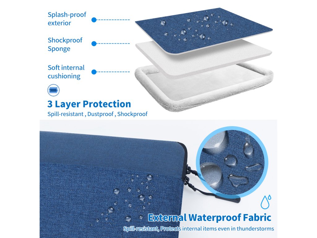 Taška je vyrobena ze tří vrstev textilie - vnější voděodolný materiál, střední nárazu vzdorný materiál a vnitřní měkký materiál. Díky těmto třem textiliím máte jistotu, že je vaše zařízení v bezpečí za všechn okolností. Rohy brašny jsou navíc opatřeny ochranou rohů zařízení.