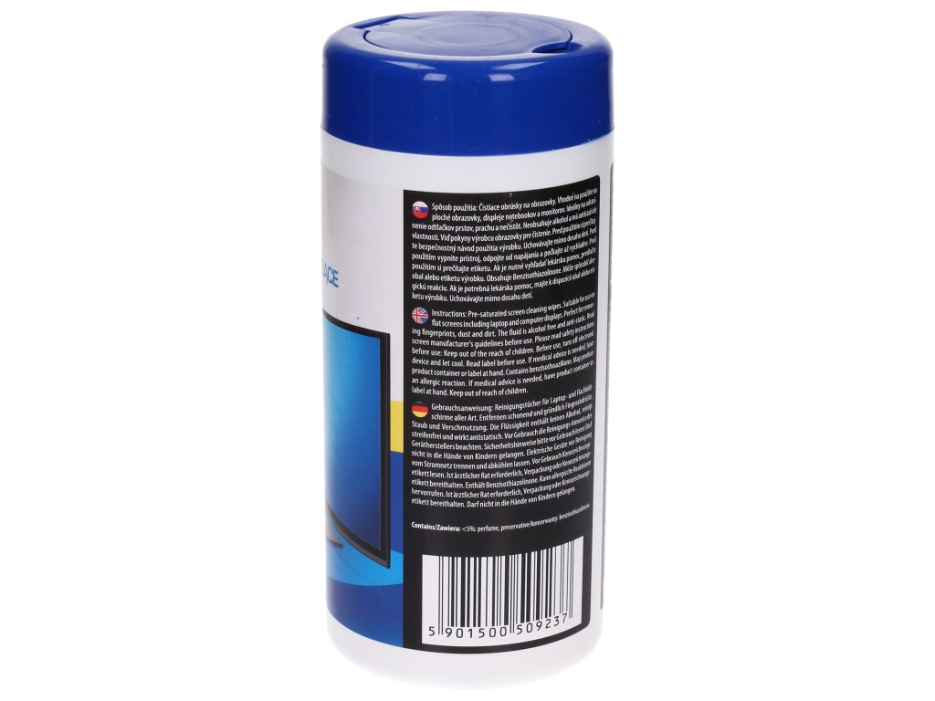 Vlhčené utěrky pro čištění obrazovky. Vhodné pro použití na plochých obrazovkách včetně přenosných a počítačových displejů. Perfektní pro odstranění otisků prstů, prachu a nečistot. Tekutina je antistatická a bez obsahu alkoholu.Velikost ubrousku: 13 x 16 cm