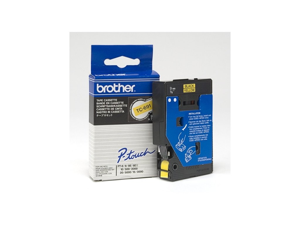 Žlutá laminovaná páska s černý potiskem. Šířka 9mm, délka 7,7m.Dodatočné parametre