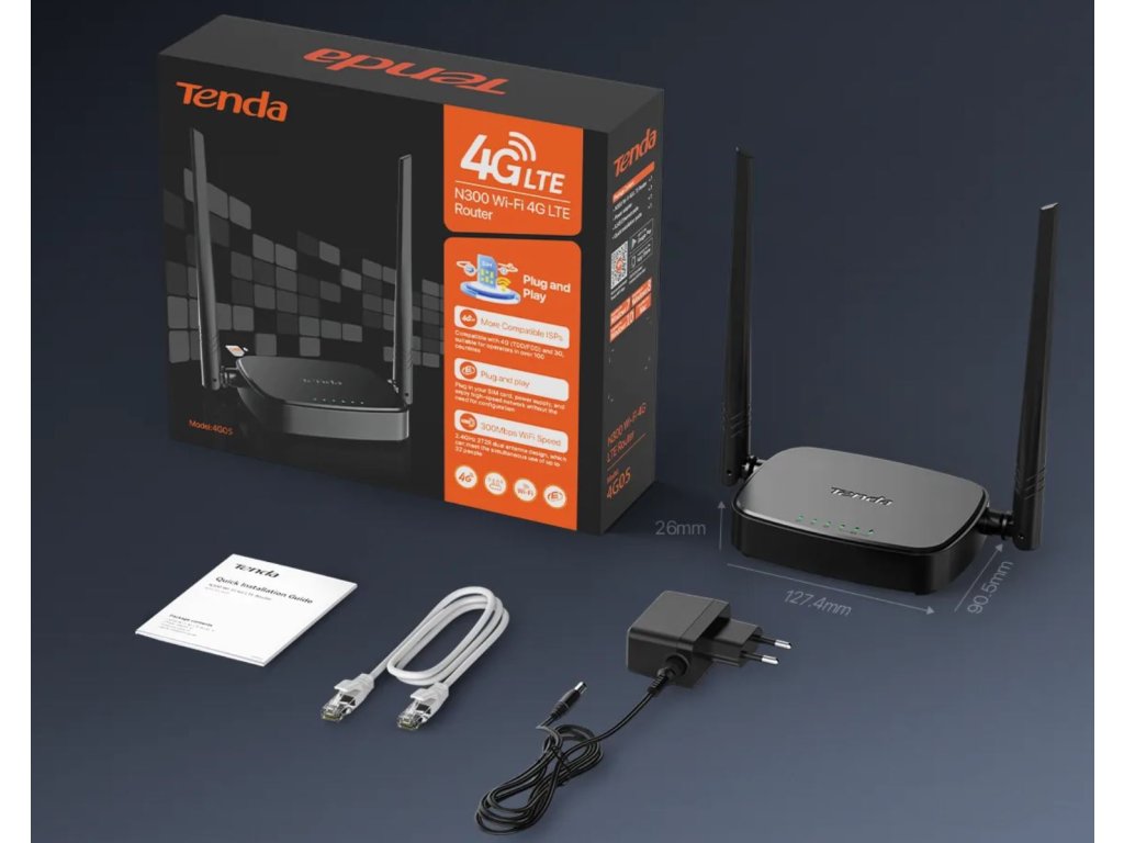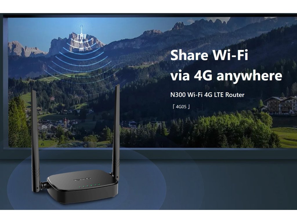 Tenda 4G05 Wi-Fi N300 4G / 3G LTE router, 2x WAN/LAN, 1x nanoSIM, IPv6, VPN, LTE Cat.4, CZ App