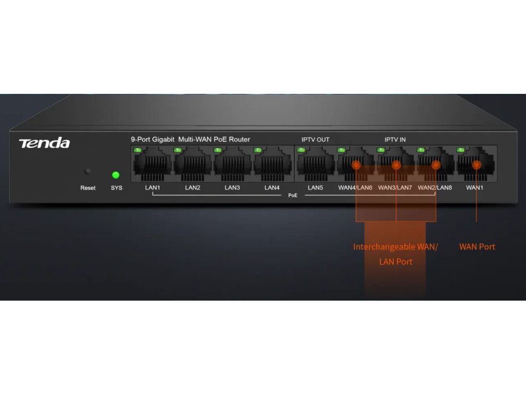 Tenda G0-8G-PoE Gigabit PoE Router MultiWAN, 3x GWAN/GLAN, 1x GWAN, 5x GLAN, 8x PoE 802.3af/at, VPN