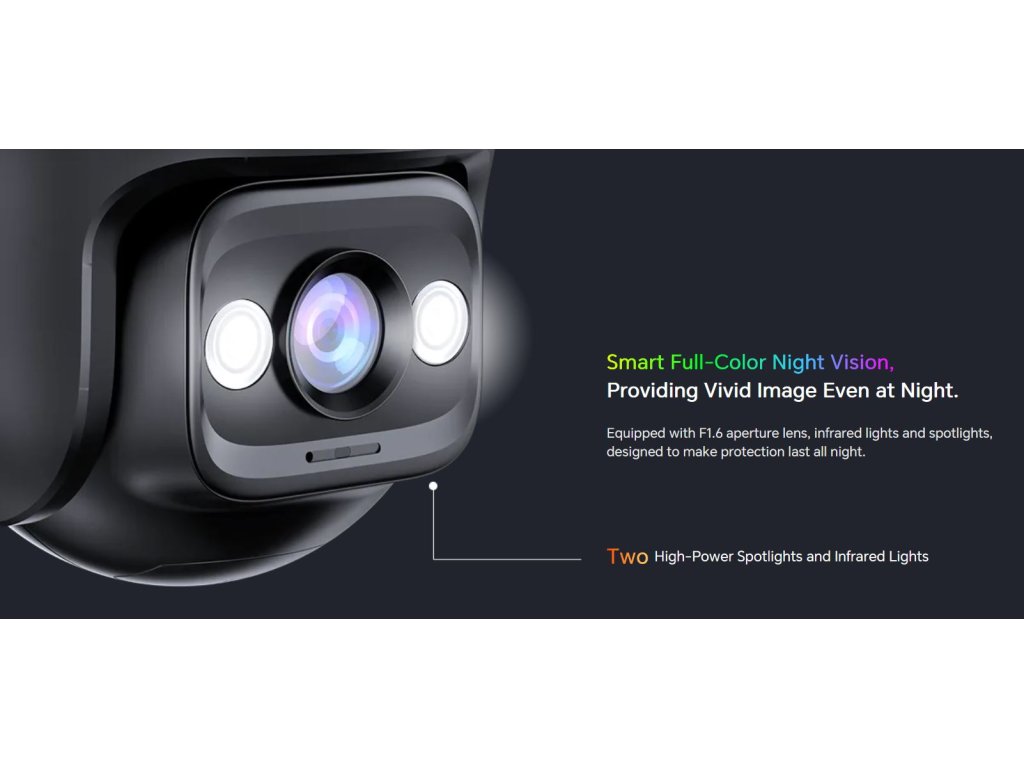 Venkovní otočná IP kamera s rozlišením 3 MPx (2304 x 1296px) a přenosem zvuku, úhel záběru 355° horizontálně a 90° vertikálně, noční vidění s dosvitem 30 m, detekce pohybu, osoby a vozidla, automatické otáčení za pohybem, vestavěný mikrofon, vestavěný reproduktor a siréna, cloud platforma, slot pro microSD kartu max. 512 GB, krytí IP65, připojení pomocí WiFi 6 nebo Ethernet portu RJ45, aplikace pro Android a iOS v češtině. Podporuje Amazon Alexa, kódování H.265, ONVIF.Popis produktu