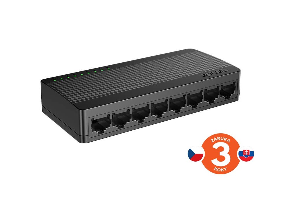 Tenda SG108M je miniaturním gigabitovým switchem s velmi nízkou spotřebou el. energie. Je ideální volbou pro připojení NAS serverů, herních konzolí, multimediálních TV, přehrávačů a PC. Díky automatickému přepínání rychlostí 10/100/1000Mb/s je plně kompatibilní s každým zařízením. Je určen pro použití v domácnostech a malých firmách.