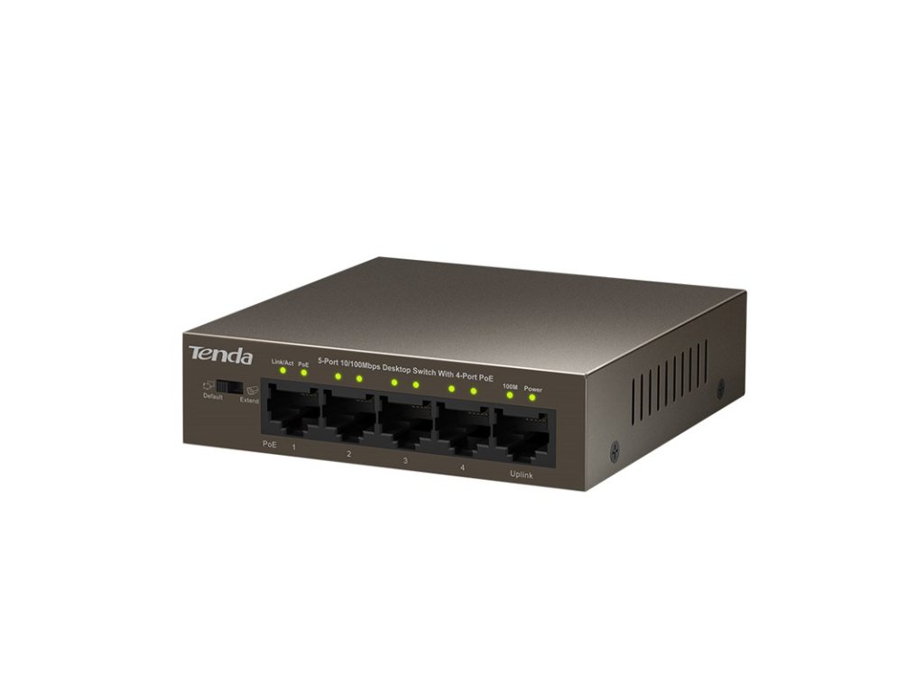 Tenda TEF1105P-4-63 obsahuje přepínač pro výběr dvou režimů: Default mode / Extend mode.