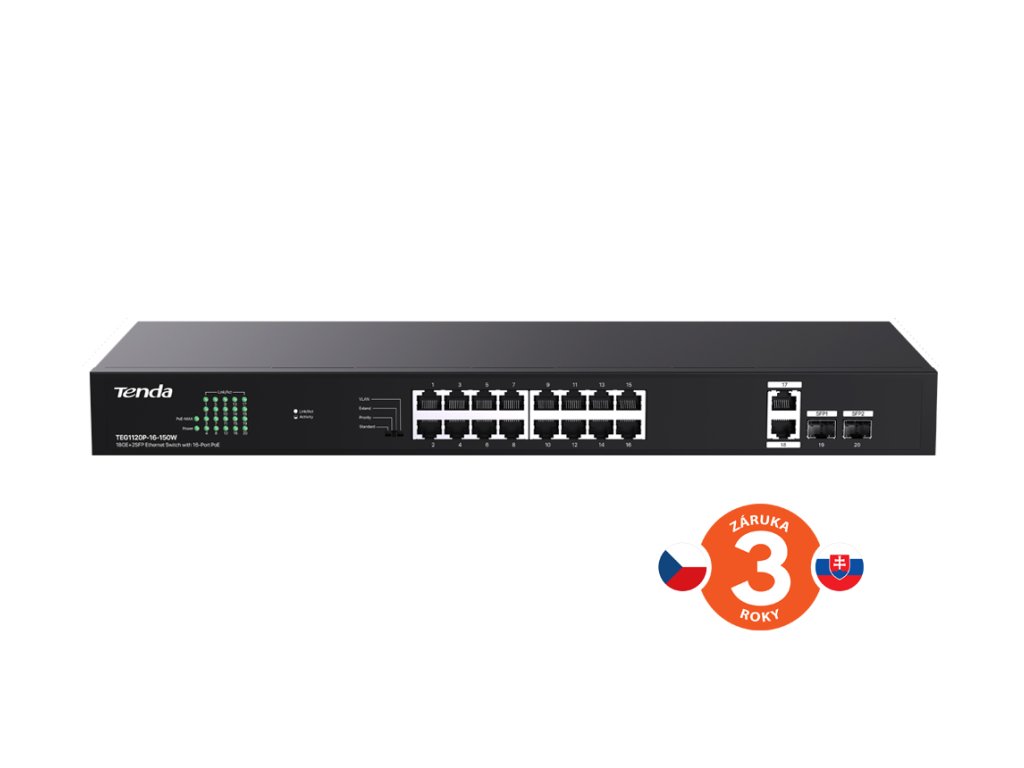 Tenda TEG1120P-16-150W je vhodná jak do menších a středních firem, tak i do větších domácností.