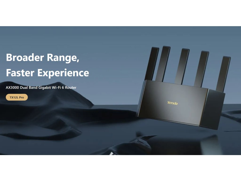 Tenda TX12L Pro AX3000 WiFi 6 Mesh Router, 1x GWAN, 3x GLAN, IPv6, 5x 6dBi, WPA 3, CZ app