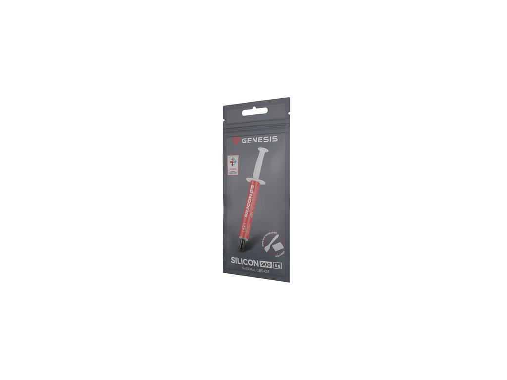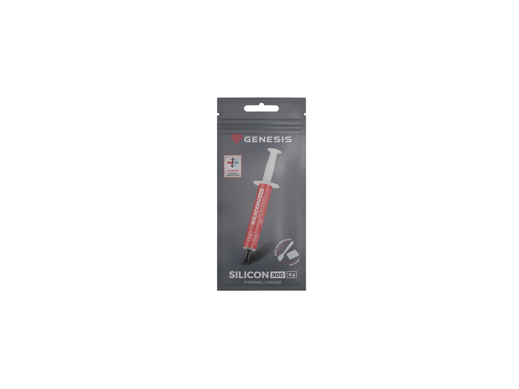 Seznamte se s GENESIS Silicon 900 - vysoce výkonnou teplovodivou pastou, která vám pomůže vyhrát nerovný boj s teplotami. Optimální hustota a dobré tepelně vodivé vlastnosti nestačí. V sadě najdete navlhčený hadřík a špachtli pro snadnou aplikaci.ÚČINNÝ BOJ PROTI TEPLOTÁM