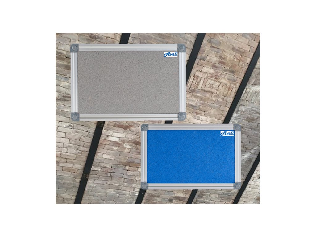 Moderní textilní nástěnka AVELI má vysoce odolný povrch proti poškození při práci s napínáčky a špendlíky. Má lehkou konstrukci a elegantní rám z kvalitního eloxovaného hliníku. Nástěnka má moderní plastové uzávěry, které zakryjí upevnění na zeď.