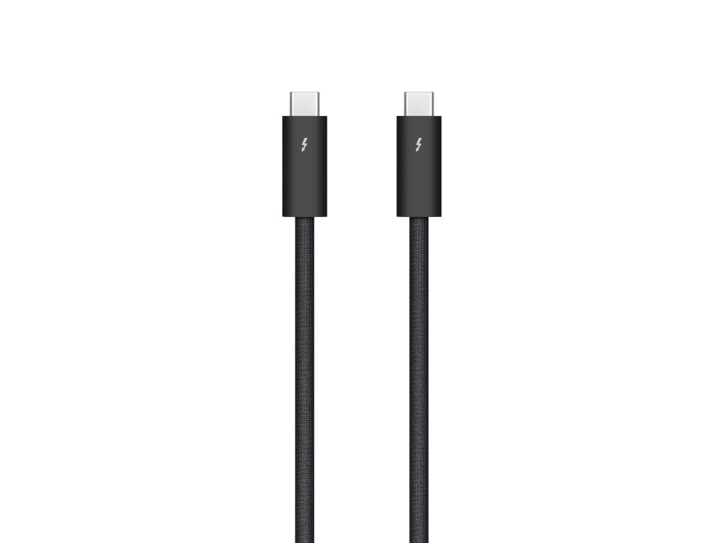 Kabel Thunderbolt 4 (USB-C) Pro (3m)Tenhle 3metrový kabel s černým opletením, které brání zamotání, podporuje přenosovou rychlost Thunderboltu 3, Thunderboltu 4 a USB 4 až 40 Gb/s, přenosovou rychlost USB 3 až 10 Gb/s, výstup videa přes DisplayPort (HBR3) a napájení příkonem až 100 W. K Macu s portem Thunderbolt 3 nebo 4 (USB-C) tímhle kabelem připojíš Thunderbolt (USB-C) a USB monitory a zařízení jako Studio Display, Pro Display XDR, doky nebo pevné disky. Tímhle kabelem taky připojíš iPhone 15 Pro k Macu.