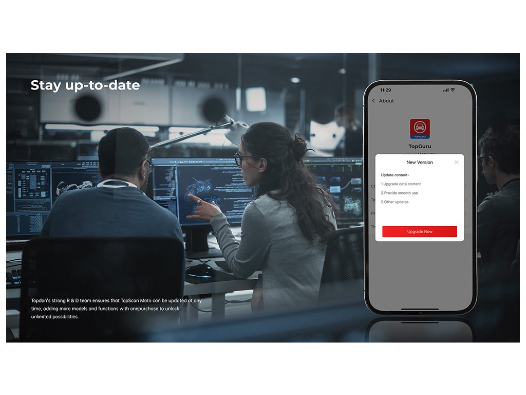 Vývojový tým společnosti Topdon neustále přidává další modely a funkce, takže s každou aktualizací můžete odemknout více možností. Aktualizace mohou přinášet nové funkce a optimalizace pro zlepšení funkčnosti a spolehlivosti.