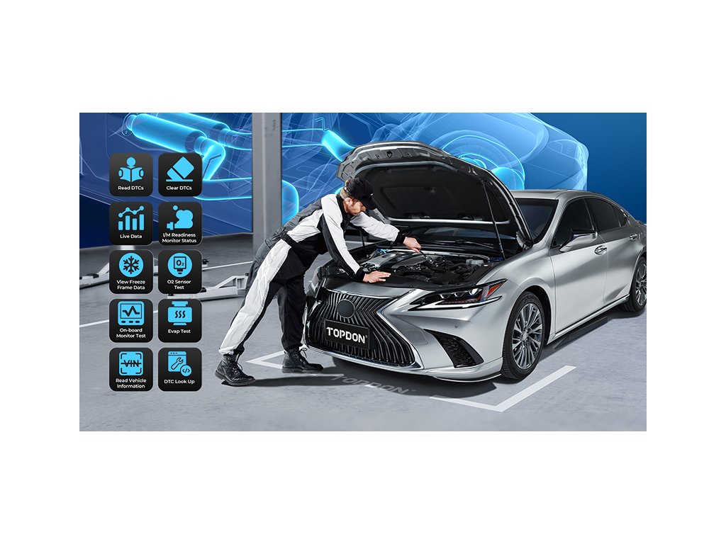 Přístroj TopScan Pro od společnosti TOPDON funguje jako čtečka kódů OBD2 a provádí všech 10 režimů testování OBD2 zdarma po celou dobu životnosti, což vám umožní přístup k důležitým informacím o ještě více vozidlech. Podporuje také všechny funkce, včetně čtení DTC, vymazání DTC, živých dat, stavu monitoru připravenosti I/M, zobrazení dat Freeze Frame, testování snímače O2, testování palubního monitoru, testování výparů, čtení informací o vozidle a vyhledávání DTC.