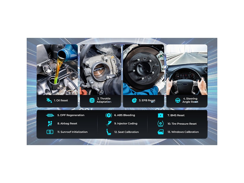 •13 speciálních funkcí (reset oleje, reset BMS, odvzdušnění ABS atd.) a možnost IMMO