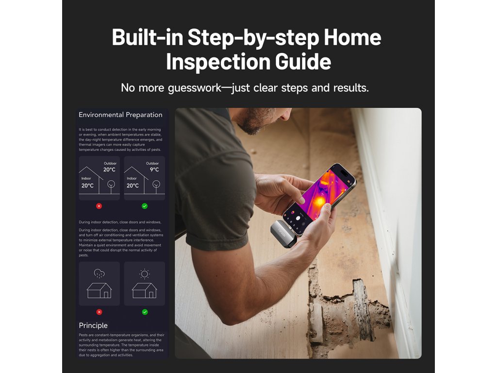 Kamera dokáže spolehlivě měřit teploty v rozsahu –20 °C až 550 °C s přesností ±2 % a citlivostí menší než 40 mK. Díky tomu zachytí i minimální teplotní rozdíly a umožňuje efektivní inspekce v domácnostech, průmyslu i při profesionálním servisu