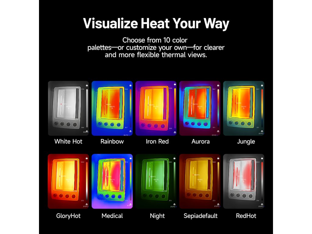 Přenosná termální infra kamera nové generace, která posouvá mobilní diagnostiku na vyšší úroveň. Připojením přes USB-C promění váš telefon, tablet nebo počítač v plnohodnotnou termokameru s detailním zobrazením.