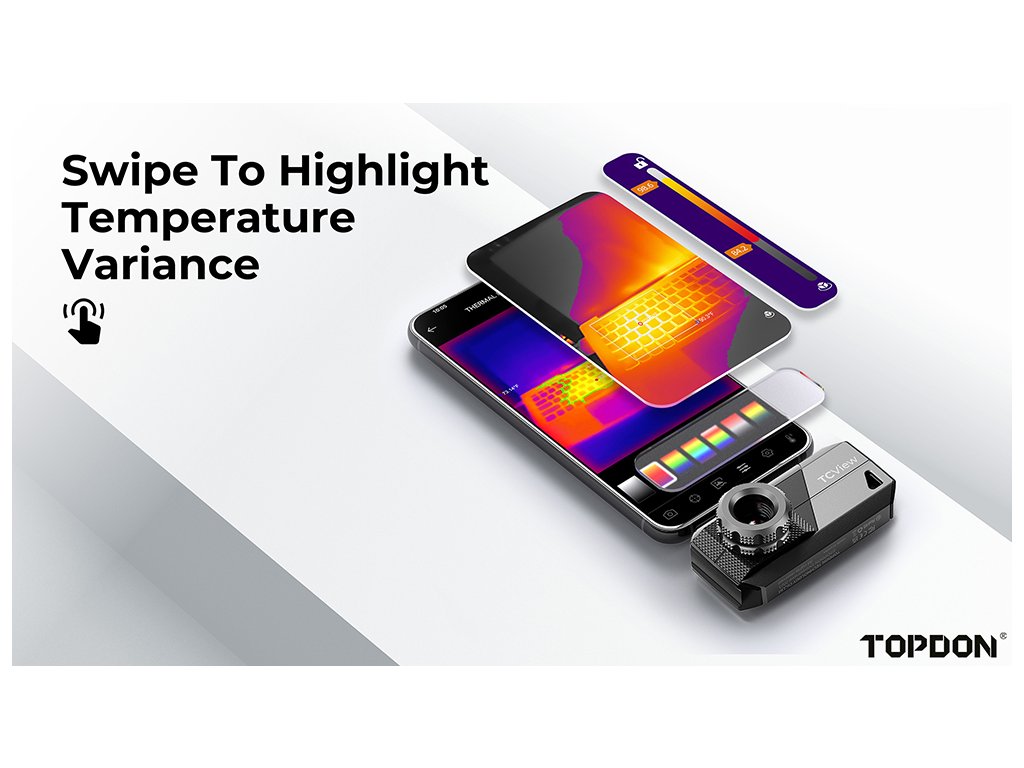 Pomocí jednoduchého pohybu prstem můžete snadno přizpůsobit termální zobrazení a zaměřit se na klíčové teplotní oblasti, které vás zajímají. Intuitivní barevný pruh umožňuje rychlé nastavení teplotního rozsahu, na který chcete upozornit. Pokud teploty překročí vámi nastavený limit, automaticky se zobrazí v tučných černobílých odstínech nebo jiných barvách dle vašeho výběru, což okamžitě zvýrazní teplotní rozdíly a zajistí snadnou interpretaci teplotních změn.