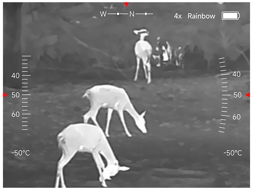 Díky 35mm nastavitelnému objektivu s infračerveným (IR) rozlišením 384 × 288 px snadno zaměříte cíle až na vzdálenost 1 280 m s vysokou přesností – a to i za mlhy, v hustém lese nebo při dešti.