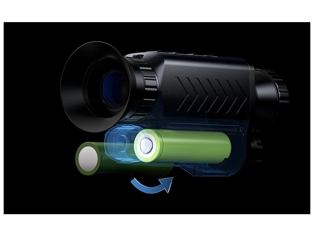 Monokulár TS005 disponuje dvěma vyměnitelnými bateriemi 18650 s výdrží až 6 hodin provozu a odolnou hliníkovou konstrukci s ochranou krytí IP65, což oceníte při loveckých aktivitách, záchranných misích, hlídkování a dalších outdoorových činnostech.
