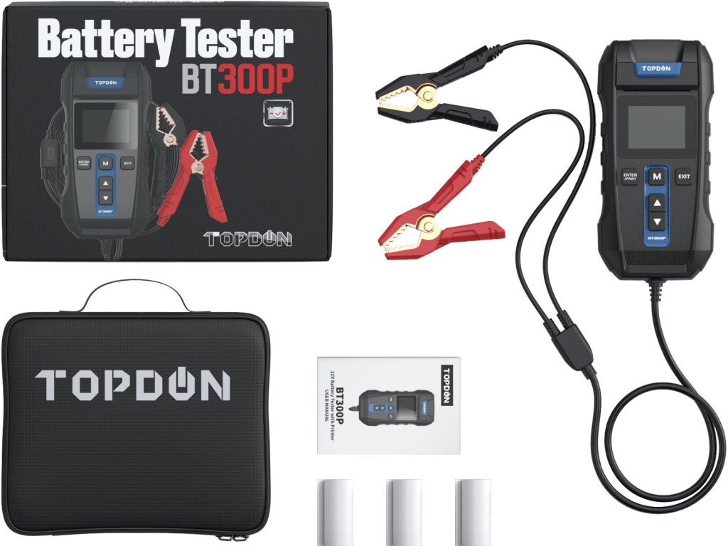TOPDON BT300P - Tester baterií a nabíjecího okruhu vozidlaTOPDON BT300P je cenově výhodná sada pro testování kvality baterie a elektrického startovacího okruhu vozidla.
