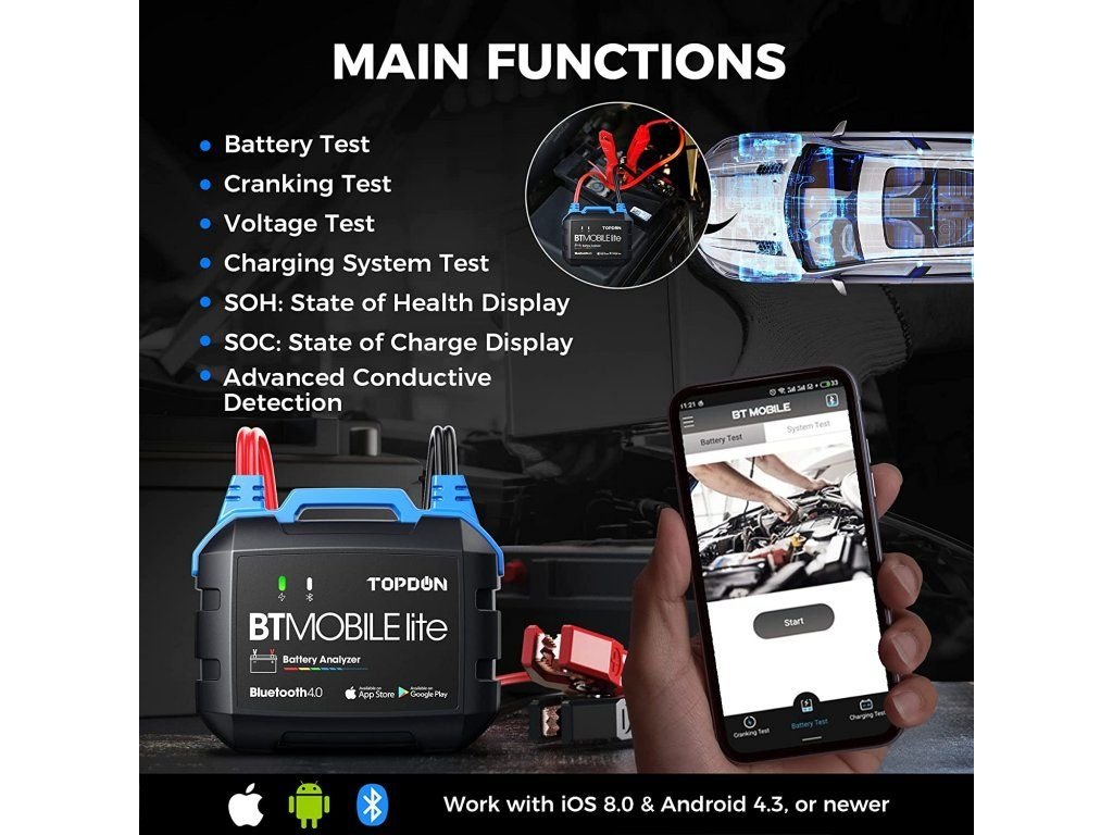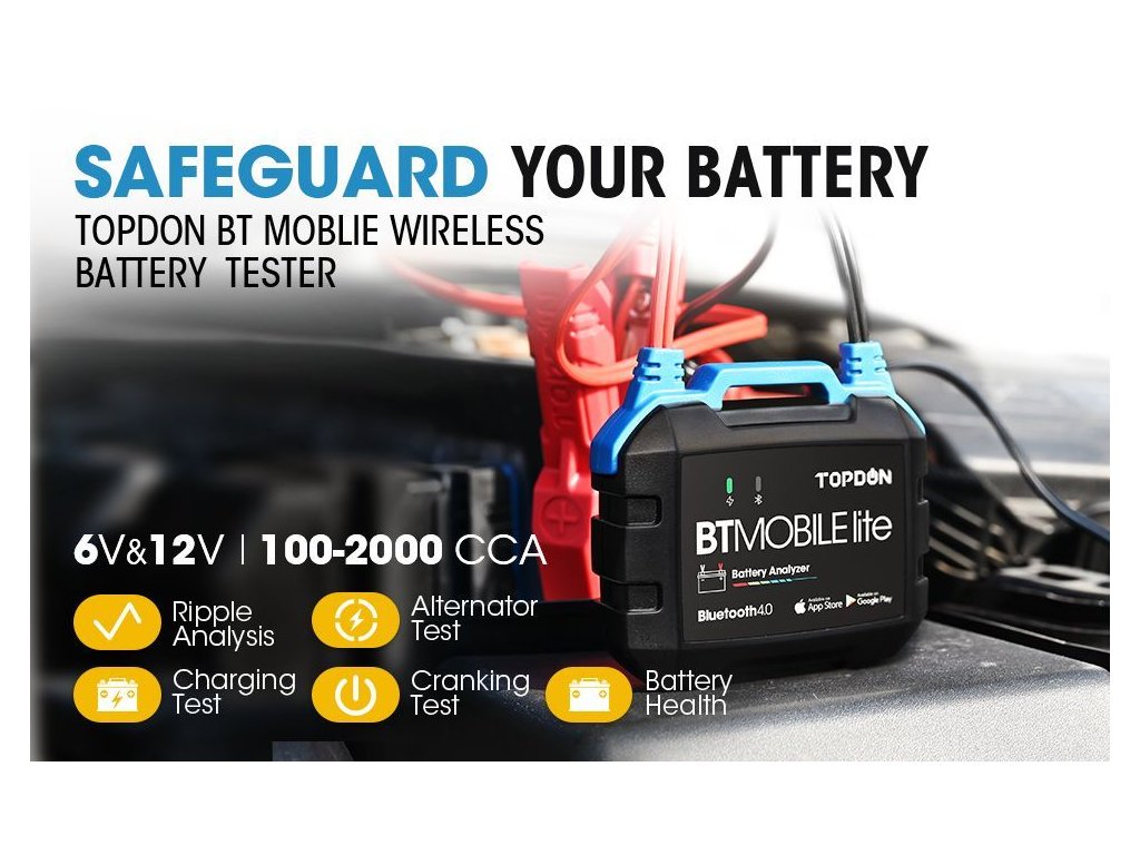 Tester TOPDON BT Mobile Lite je nepostradatelným pomocníkem pro všechny majitele jakéhokoliv vozidla a nezbytností pro všechny majitele firem s vozovým parkem. Pokud chcete mít kompletní přehled o vozidlech, battery tester BT Mobile lite je tou nejlepší volbou.