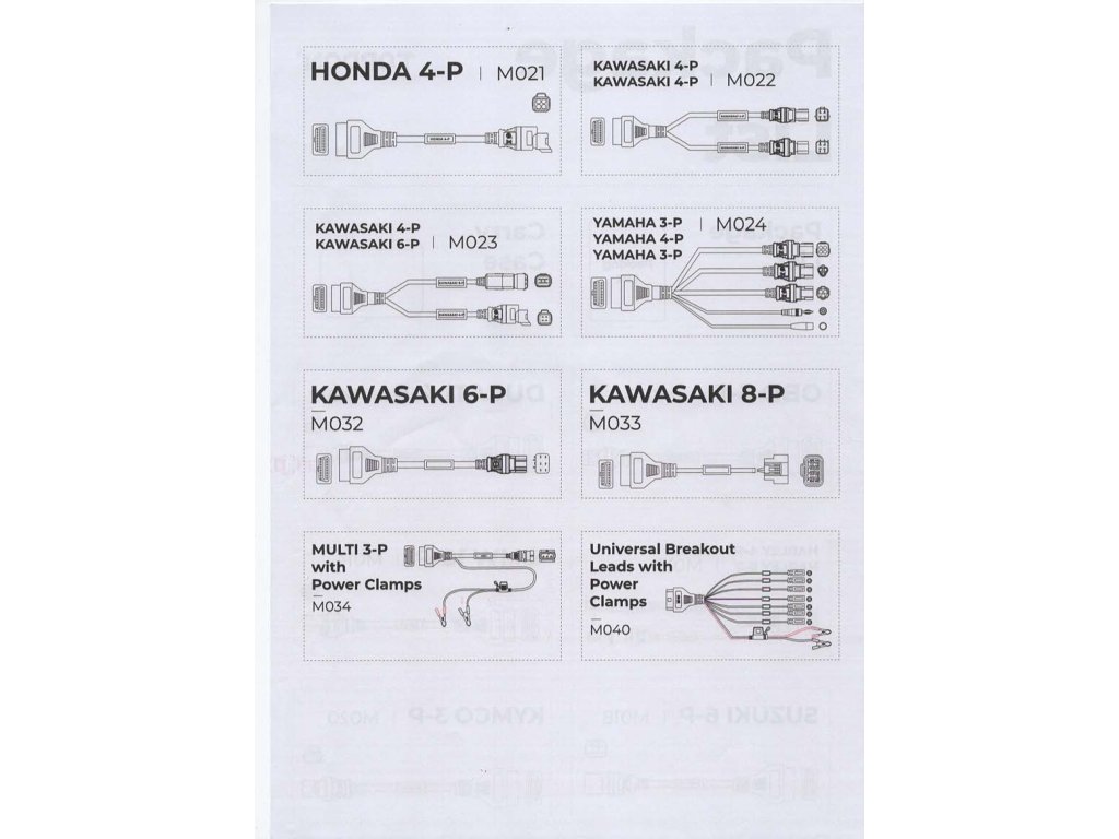 Kabelová sada je navržena pro spolehlivý přenos dat mezi motocyklem a diagnostickým zařízením, což vám usnadní provádění diagnostiky, zjištění závad a optimalizaci výkonu. Tato sada obsahuje značky BMW, Harley, Ducati, Kawasaki, Honda, Yamaha, Suzuki.