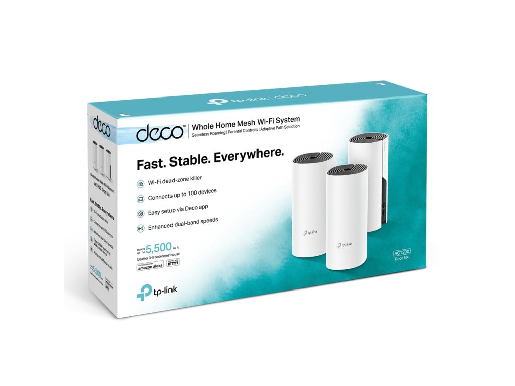TP-Link AC1200 Whole-Home Mesh Wi-Fi System Deco M4(3-Pack), 2xGigabit port