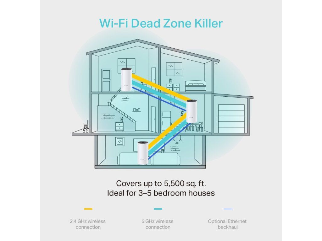Deco využívá systém jednotek k dosažení bezproblémového celoplošného Wi-Fi pokrytí - eliminuje slabé oblasti signálu jednou provždy!