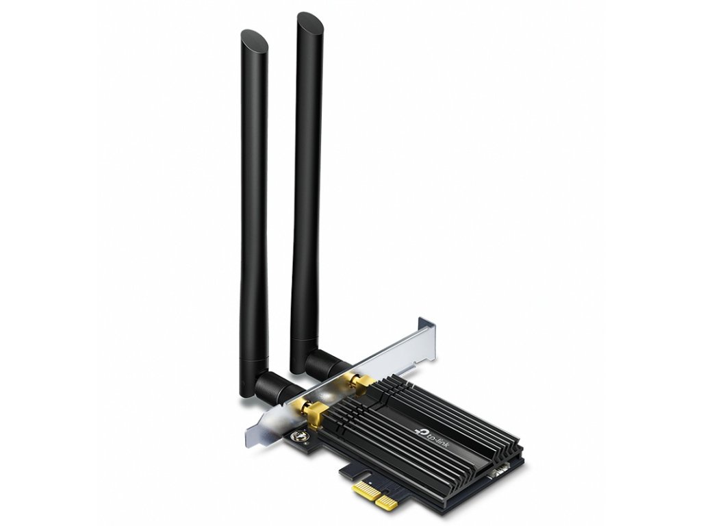 TP-Link Archer TX50E PCIe adaptér AX3000 Wi-Fi 6 Bluetooth 5.0. Vysoký výkon pro vysoké požadavky. Nejnovější standard Wi-Fi, Wi-Fi 6, poskytuje extrémní rychlost, velmi nízkou latenci a nepřerušované připojení, takže si můžete užít rychlejší stahování, plynulejší streamování a pohlcující hraní. Vysoce výkonné antény pro širší pokrytí.Dvě výkonné antény s vysokým ziskem zvyšující zisk výrazně rozšiřují stávající pokrytí Wi-Fi a nabízejí rychlý a plynulý online zážitek.Nejnovější technologie Bluetooth 5.0 dosahuje rychlosti 2 × rychlejší a pokrytí 4 × širší, než Bluetooth 4.2, aby dokonale koordinovala s vašimi herními ovladači, sluchátky, klávesnicemi a dalšími zařízeními Bluetooth.