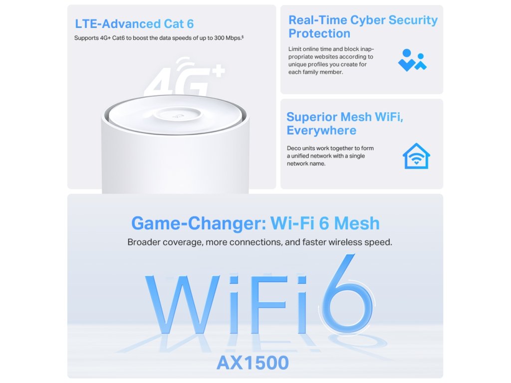TP-Link Deco X10-4G(1-pack) 4G+ AX1500 Mesh Wifi6 LTE System